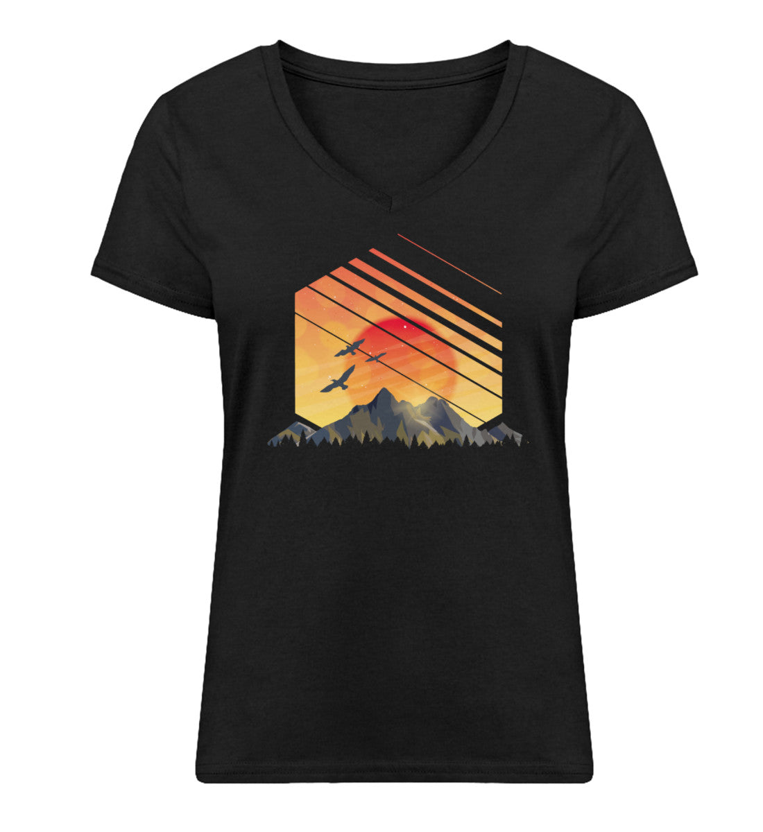 Mach das Sonnenaufgang Alpen - Damen Organic V-Neck Shirt zu deinem neuen alltäglichen Begleiter, egal ob am Berg oder im Tal.