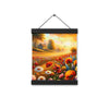 Ölgemälde eines Blumenfeldes im Sonnenuntergang, leuchtende Farbpalette - Premium Poster mit Aufhängung